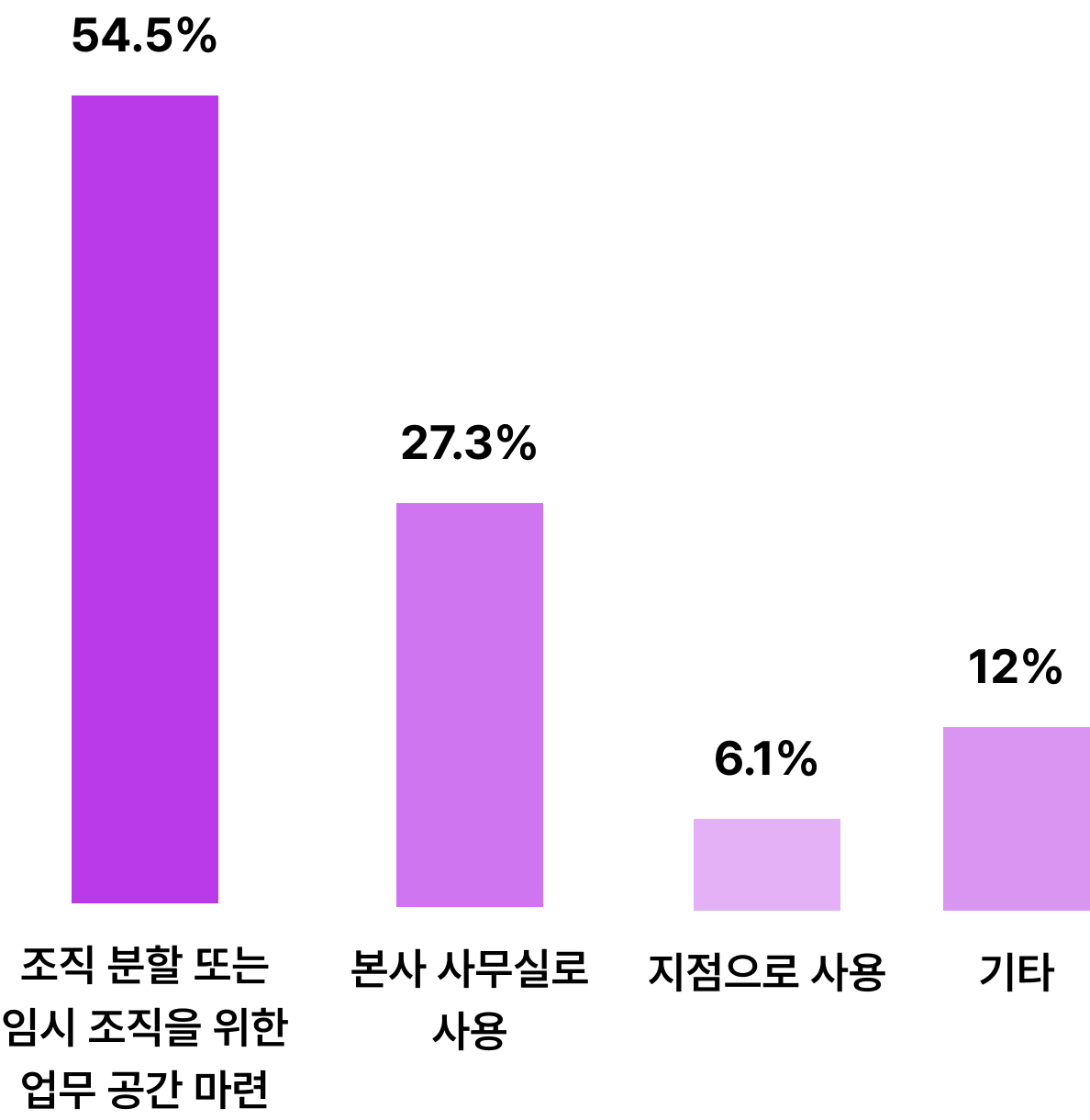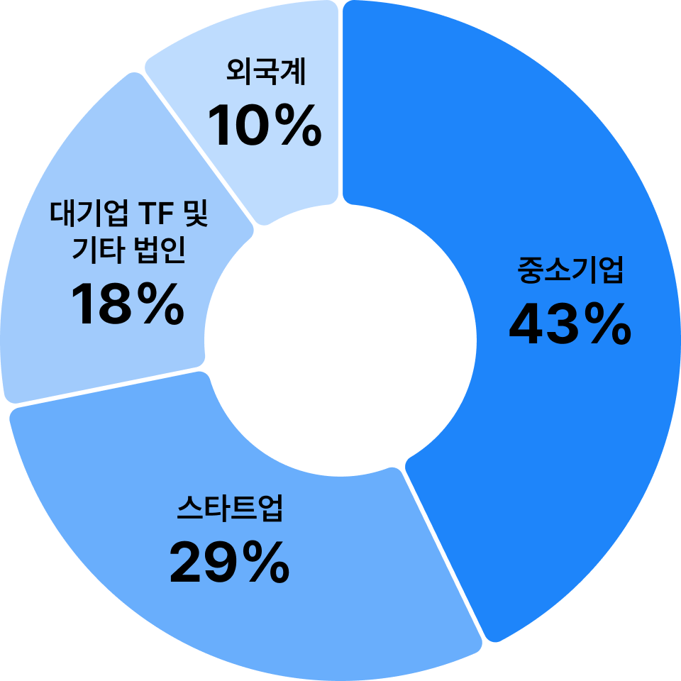 다양한 입주사들이 다양한 목적으로 공유 오피스를 사용하고 있습니다.